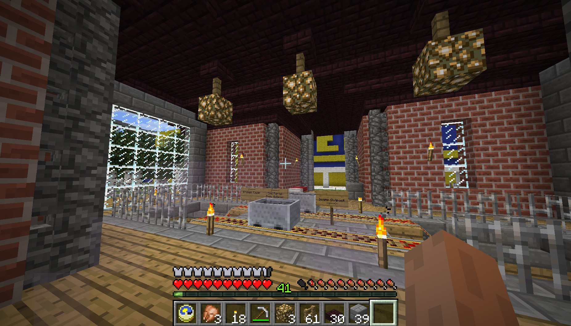 A fancy hub that was one of my first more complicated builds. Inspired by starting areas in old servers, this would've served as the spawn for my world, and includes some maps on the wall