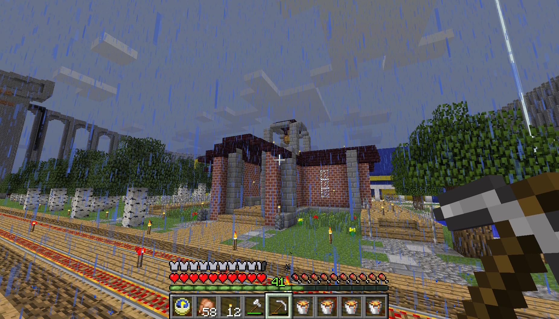 The birch trees off to the left are my primary tree farm, since they're the easiest to chop down