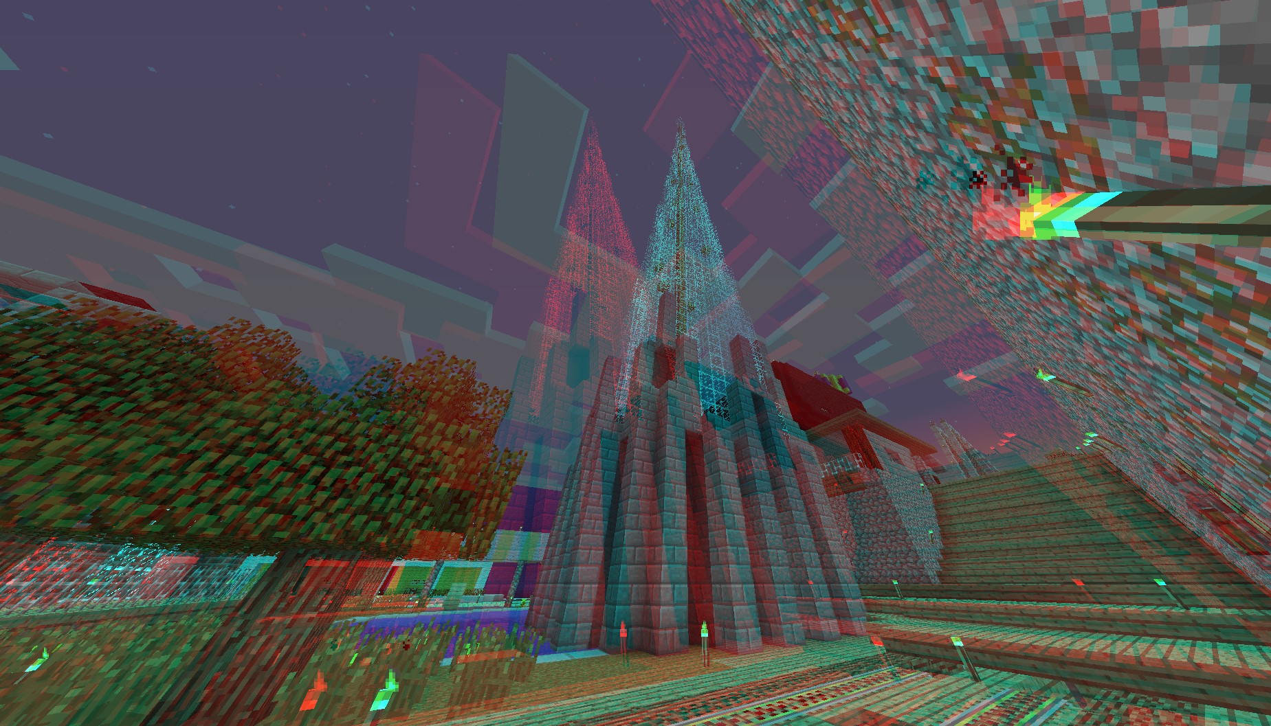 This screenshot also showcases a feature that was still built in by 1.6.2, a 3d anaglyph setting to play in 3d. It doesn't work the greatest on everythign but is super cool when it does